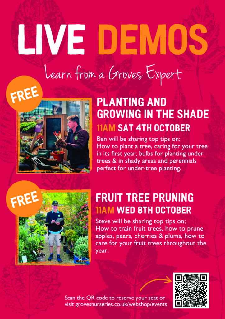 To reserve a seat visit grovesnurseries.co.uk/webshop/events